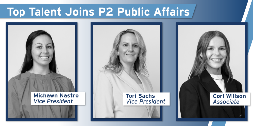 WASHINGTON, DC (March 28, 2025) – P2 Public Affairs is proud to announce the addition of three new team members, bringing top-tier experience in public affairs, strategic communications, and political strategy. These hires position P2 to further strengthen its ability to deliver results for its clients at the highest level.